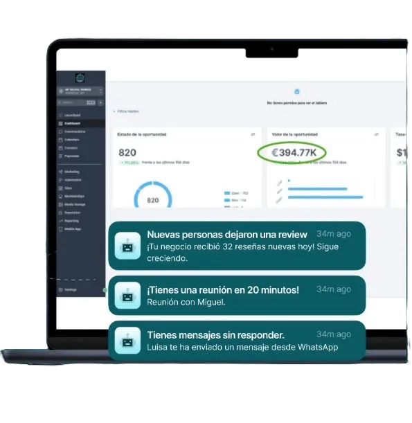 CRM Automatizado: Nuestro sistema de CRM con inteligencia artificial automatiza el proceso de captación, seguimiento y cierre de clientes con embudos de conversión inteligentes, chatbots y secuencias de email y WhatsApp 100% optimizadas